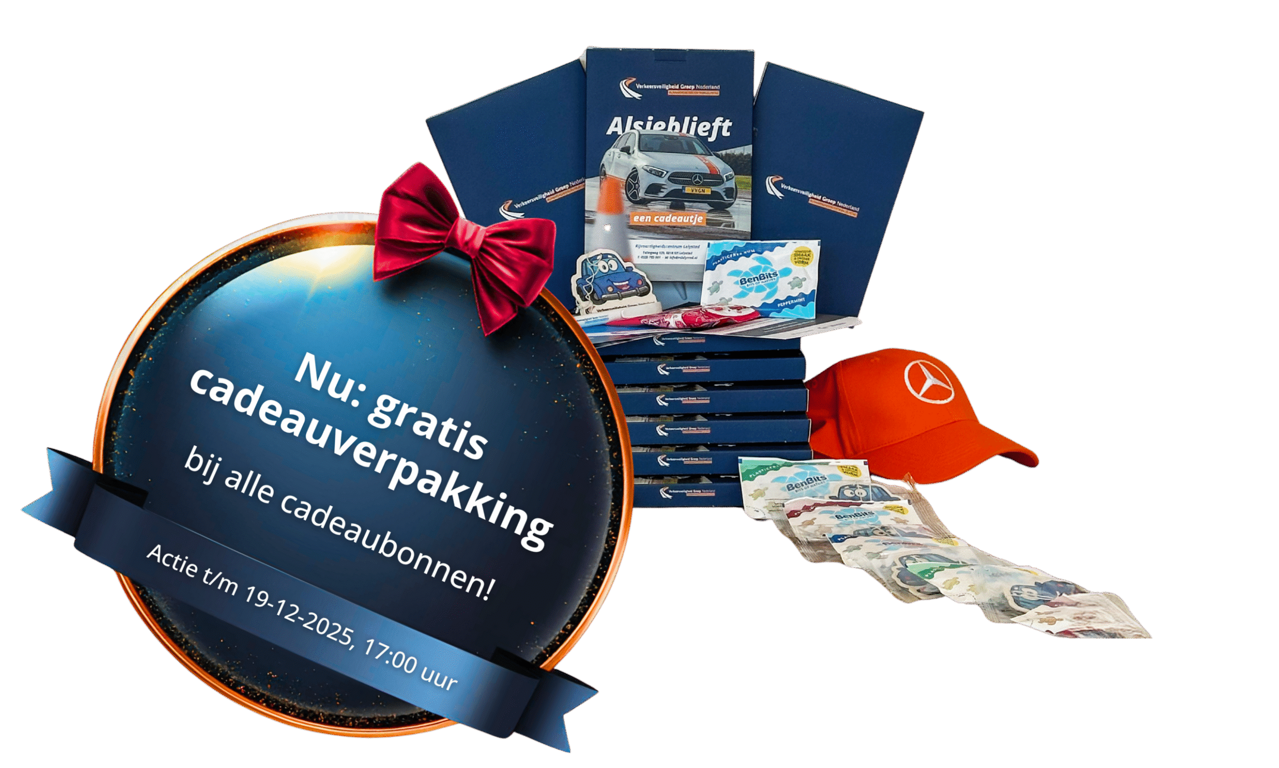 Bij de ‘cadeauverpakking per post’ ontvangt u de cadeaubon voor uw slipcursus leuk ingepakt in een cadeau pakket waarin naast de cadeaubon ook een voucher met code voor 10% korting voor een 2e persoon*, een zakje snoep/kauwgom en exclusieve goodies van Rijvaardigheidscentrum Lelystad zitten.